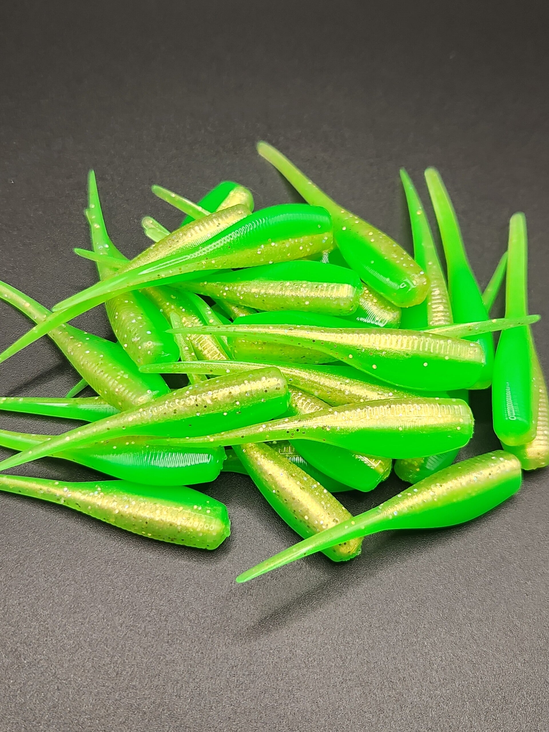 The answer is yes, this bait will bring you some luck! A gold back paired with a bright green belly, and the extreme action on the tail is sure to grab the attention of any panfish nearby. The bright colored belly is easier to see in darker water, and especially effective when the crappies are below the bait and famously bite upwards, a sure magnet! 2 inches long, 10qty per pack.
